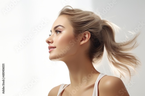 beautiful, young, freshness, female, woman, portrait, view, profile, photo, stylish, beauty, hair, make-up, glamourous, elegance, skincare, studio, shot, confidence, radiant, vibrant, chic, trendy, elegant, graceful, glamour, style, fashionable, youthful, adorable, adult, attractive, background, bare, caucasian, clean, colours, copy space, cute, emotion, erotic, expression, fashion, feminine, fresh, girl