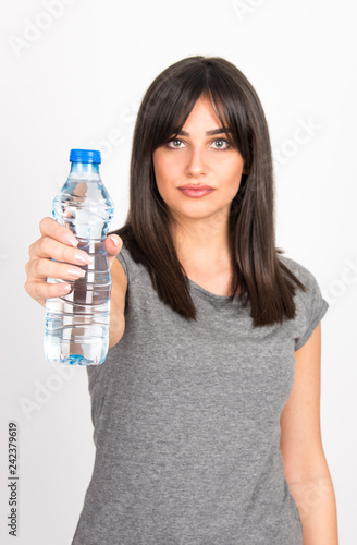 beautiful young girl holding bottle of water