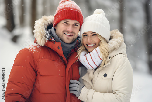 well-being, personal, human relationships, boyfriend, wellness, fashionable, relax, together, hat, activewear, fitness, smiling, informal, happiness, male, wearing, love, family, jacket, couple, female, man, portrait, white, woman, young, caucasian, healthy, lifestyle, cheerful, snow, nature, good mood, cold, winter, park, down jacket