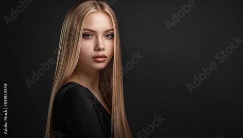 Beautiful young lady with extremely golden hair colour. Stylish hairdo performed in a spa. cosmetics, makeup, and clothing