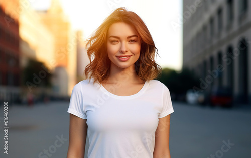 t-shirt, shirt, white, woman, template, blank, copy space, portrait, young, clothes, background, street, light, generative, ai, empty, cotton, commercial, marketing, 1, smiling, beautiful, adult, girl, body, front, print, presentation, casual attire, outfit, female, styled, apparel, clothing, concept, fashion, textile, wear, advertisement, design, lifestyle, attractive