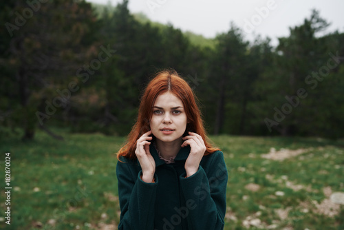 Beautiful young woman is walking in nature, in the forest, field