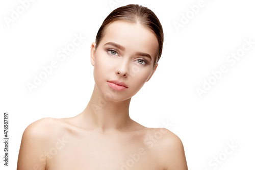 Beautiful Young Woman with Clean Fresh Skin isolated on white background