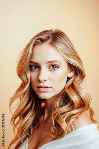 woman, blond, hair, portrait, wavy, stylish, beauty, fashion, elegance, female, model, closeup, soft, smile, natural, shiny, long, colours, teasing, trendy, profession, studio, background, grooming, hair care, haircolor, appearance, youth, attractive, charme, expression, personality, style, head shot, pose, outfit, relaxed