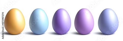 Beautifully Arranged Pastel Easter Eggs on a White Background for a Joyful Spring Celebration.