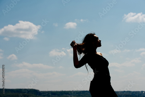 beauty, fashion, health, nature, spring, summer, holiday, vacation, freedom, girl, woman, model, hair, long, natural, shampoo, young, blue, sunny, healthy, stylish, female, beautiful, sky, environment, brunette, sexy girl, adorable, showing, day, sexy, sexy woman, fashionable, clothes, desire, coiffure, black, pretty, cute