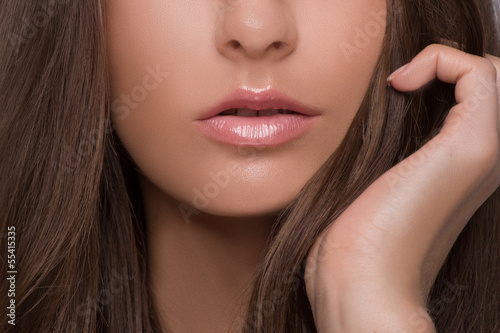 20s, attractive, beautiful, beauty, brown hair, caucasian, closeup, confidence, cute, fashion, fashion model, female, glamour, horizontal, human face, human hair, human hand, human lips, human skin, long hair, make-up, part of, pensive, woman, young adult