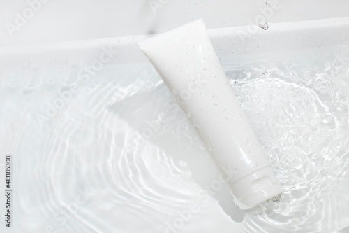 beauty fashion cosmetic makeup bottle lotion cream product with skincare healthcare concept on water splash background