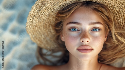 portrait, beauty, woman, beach, sand, nature, closeup, summer, relaxation, style, lifestyle, carefree, sunlight, freckle, calm, serenity, photo, fashion, youth, tranquil, natural light, femininity, soft focus, coastal, ocean, daydreaming, elegance, casual attire, bliss, vacation, travel, sun tanning, glamour, blue eye, golden hair, dreamy, aesthetic, peaceful, beachwear, wanderlust