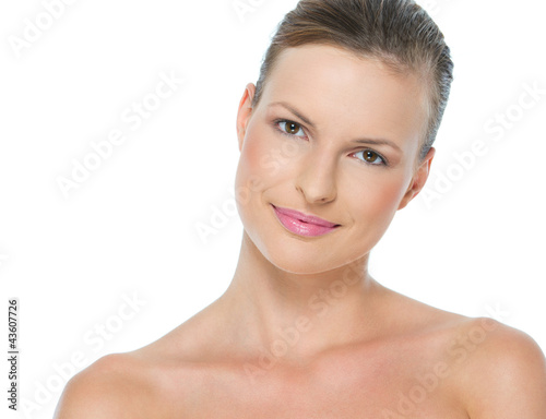 Beauty portrait of happy young woman isolated on white