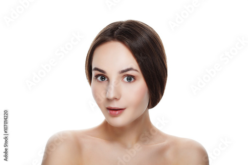 face, beauty, skin, beautiful, woman, white, model, care, portrait, fresh, background, skincare, young, girl, clean, female, healthy, health, clear, spa, honed, youth, isolated, view, brunette, facial, natural, pretty, cleansing, body, hand, looking, head, front, wellness, touch, age, pamper, adult, smile, logotype, text, lifting, surgery, plastic, brow, shock, surprise