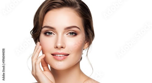 beauty, skin, face, woman, skincare, model, portrait, girl, make-up, young, female, care, healthy, spa, natural, fresh, isolated, white, background, touching, beautiful, cosmetic, pretty, clean, treatment, brunette, glow, attractive, wellness, facial, honed, hand, cheek, dermatology, cosmetic, look, smooth, rejuvenation, flawless, lifting, hygiene, closeup, lady, studio, fashion, smiling, happy