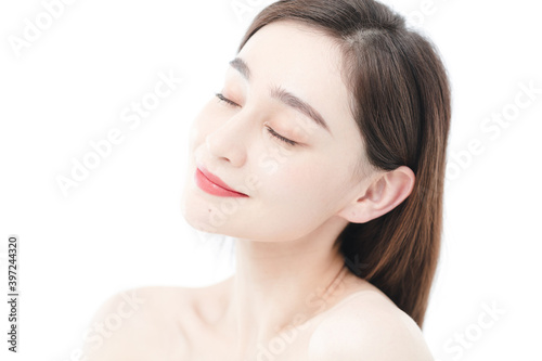 asian, woman, beauty, make up, portrait, adult, asia, beautiful, bodycare, care, chinese, closeup, confidence, cosmetic, cut-out, cute, eye, face, finger, foundation, freshness, hair, hand, health, human, isolated, lip, model, natural, one person, pastel colour, people, pose, pure, skincare, smile, smiling, spa, studio shot, white, white background, young