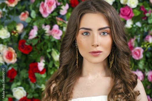 woman, sexy, make-up, flower, wall, russian, adult, attractive, beautiful, beauty, care, caucasian, chestnut, posh, curl, dress, female, flower, glamour, glamour, gold, gorgeous, hair, high, imagination, jewellery, jewellery, lady, leg, long, looking, constructed, party, red, relax, rose, seductive, sexual, skin, smiling, studio, tanned, transparent, white, woman, young