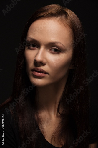 Beauty woman face portrait. Beautiful spa model girl with perfect fresh clean skin. Glitter nude makeup Youth and skin care concept. Isolated on gray background