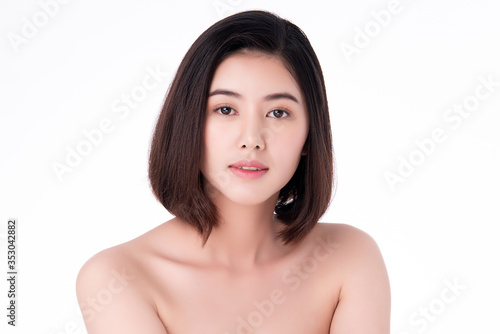 Beauty Woman face Portrait, Beautiful Young Asian Woman with Clean Fresh Healthy Skin, Facial treatment. Cosmetology, beauty and spa, isolated on white background.