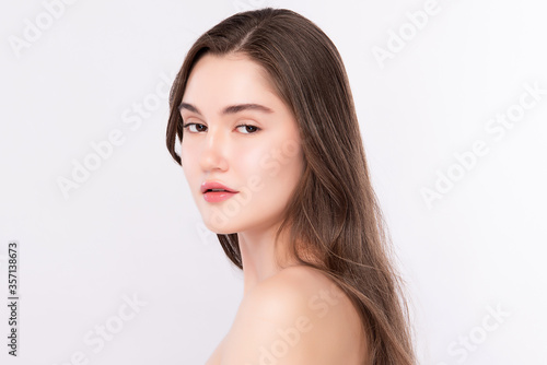 Beauty Woman face Portrait, Beautiful Young Woman with Clean Fresh Healthy Skin, Facial treatment. Cosmetology, beauty and spa, isolated on white background.