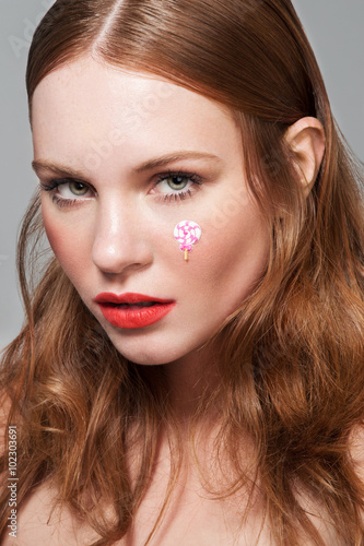 Beauty Woman Portrait. Long Red Hair and creative make up art.