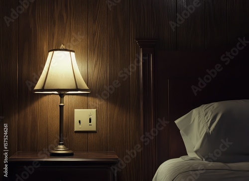 lamp, light, table, interior, room, furniture, hotel, home, bedchamber, design, decor, shade, wall, antique, bed, wood, house, chair, desk, night, wooden, indoor, elegance, table lamp, decoration
