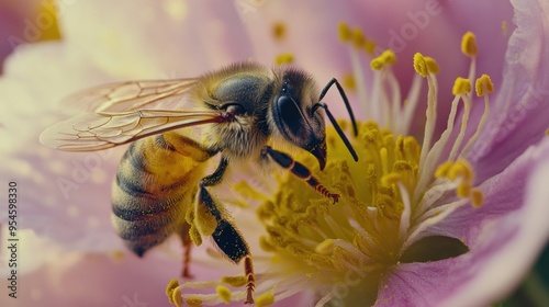 bee, flower, pink, pollen, nectar, macro, insect, wildlife, nature, closeup, garden, flower petals, blossom, honey bee, floral, yellow, spring, bloom, bug, fauna, photo, entomology, natural, beautiful, delicate, vibrant, soft, gentle, life, organic, plant, earth, beauty, pollination
