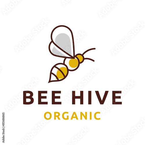 Bee hive and honey logo flat vector designBee hive and honey logo flat vector design