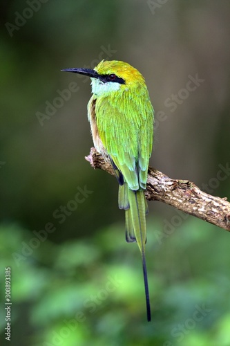 Bee-eater on the branch. Natural green background.The Green Bee-eater/ Merops orientalis, (sometimes Little Green Bee-eater). Sri Lanka