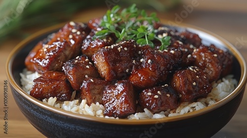 beef, rice, sesame seeds, herb, bowl, food, dinner, meal, asian cuisine, chinese food, japanese food, korean food, delicious, tasty, appetising, savoury, cookery, dish, healthy, epicure, eatery, home cooking, fresh, garnish, cooked, closeup, macro, high-quality, food photography, receipe, cooking