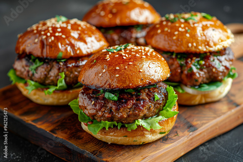 Beef burgers with lettuce.