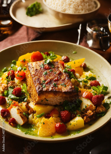 food, meat, dinner, meal, plate, salad, pork meat, dish, epicure, sauce, beef, fried, cookery, chicken, grilled, vegetable, lunch, vegetable, tomatoes, delicious, roasted, steak, lamb, parsley, fresh
