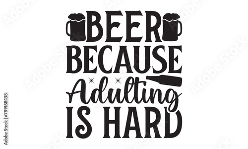 Beer Because Adulting Is Hard on white background,Instant Digital Download. Illustration for prints on t-shirt and bags, posters
