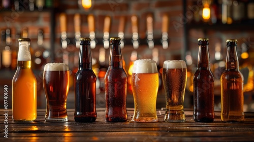 beer bottle selection, an array of beer bottles lined up, ready to liven up any party with delicious choices
