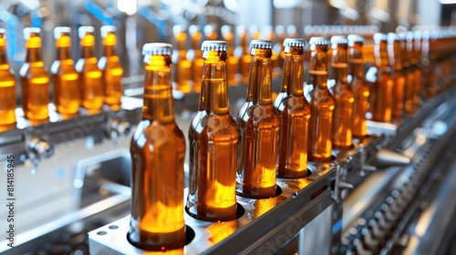 Beer bottles on the conveyor belt