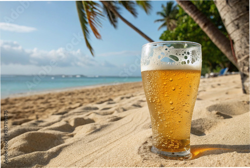Beer in a chilled glass. Sand and beach. Memories of summer. Reunion. Socializing. Local beer. Craft beer.
