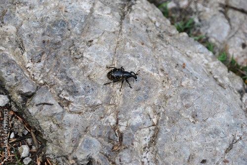 Beetle walking on stone. Picture taken in the park, in the forest.