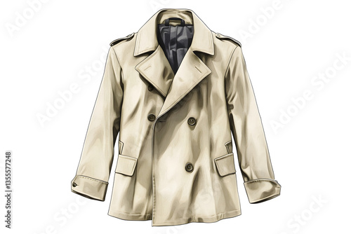 coat, fashion, clothing, apparel, neutral, outerwear, beige, buttons, pocket, lapel, cuff, texture, fabric, style, elegant, formal, classic, minimalist, urban, chic, sophisticated, professional, business, accessory, outfit, clothes rack, design, seasonal, winter, fall, trend, retail, shopping, display, studio, white, background, isolation, product, item, showcase, presentation, advertisement, catalog, e-business, photo