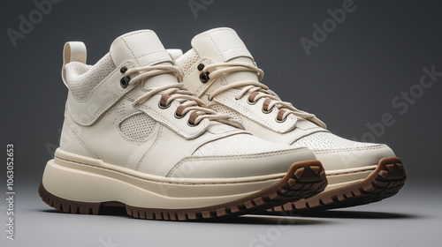 sneaker, footwear, shoe, styling, beige, urban, casual attire, leather, rugged, trend, comfort, outdoors, fashionable, lifestyle, modern, design, aesthetic, quality, sole, texture, everyday, versatile, classic, walking, fashion, trendy