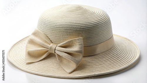 hat, lady, fashion, accessory, beige, ribbon, bow, elegant, stylish, summer, sun, protection, headwear, straw, woven, classic, vintage, feminine, chic, trendy, design, isolated, white, background, studio, shot, closeup, detail, no, people