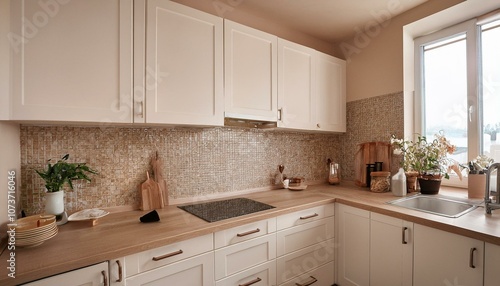 beige, modern, home, kitchen, interior, kitchen utensile, sleek, minimalist, contemporary, roomy, natural light, high-end, polished, functional, airy, refined, cosy, inviting, harmonious, organised, sophisticated, tranquil, welcoming, bright