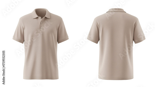 Beige polo shirt mockup front and back view isolated on white background for brand presentation