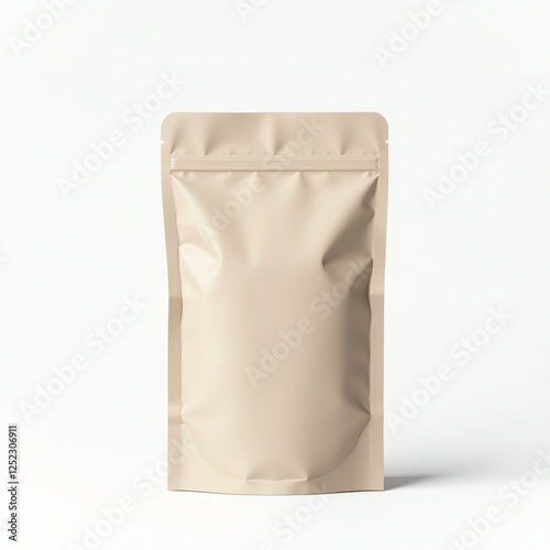 Beige Stand-up Pouch Mockup with Zipper on White Background for Products