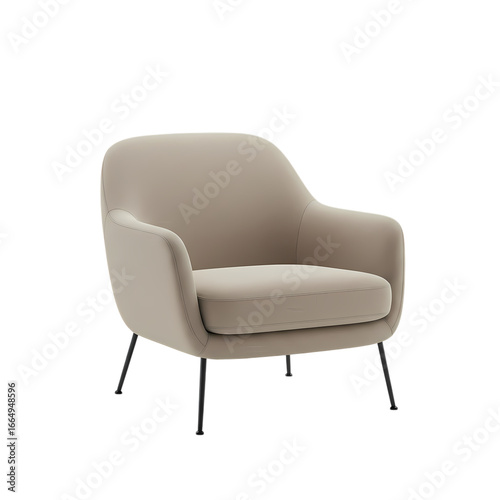 Beige Upholstered Armchair with Black Legs Modern Furniture Design isolated on transparent background