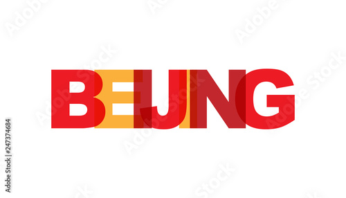 Beijing, phrase overlap color no transparency. Concept of simple text for typography poster, sticker design, apparel print, greeting card or postcard. Graphic slogan isolated on white background.