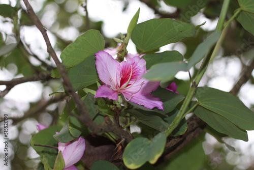 Bela flor entre as folhas verdes, bela flor no galho das árvores