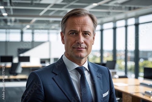 Belgian Business Leader in Custom Suit Showcased Against Vibrant Office Background