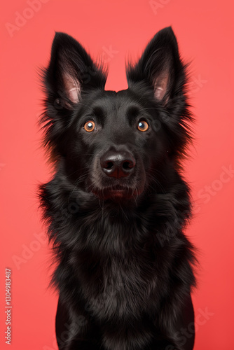 Belgian Sheepdog dog on minimalistic colorful background with Copy Space. Perfect for banners, veterinary ads, pet food promotions, and minimalist designs.