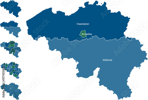 BELGIUM MAP with its administrative divisions and regions