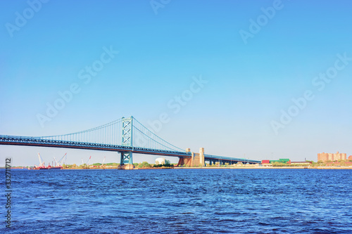 Benjamin Franklin Bridge above Delaware River in Philadelphia