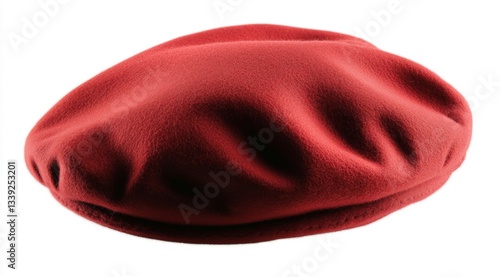 beret, hat, red, wool, cap, surface, studio, closeup, headwear, clothing, apparel, crimson, scarlet, fabric, texture, isolated, white, fashion, style, accessory, winter, autumn, warm, soft, cosy, elegant, retro, vintage, classic, formal, casual attire, attire, textile, headdress, iconic, artistic, presentation, decoration, still life, element, object, minimalist, plain, background, single, indoor, fashionable