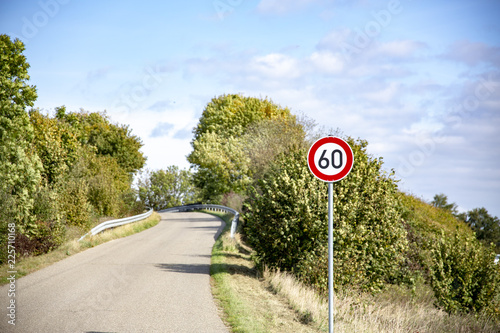 signs, 60, limitation, way, hill, road, speed, traffic, warning, heaven, roadsign, highway, limit, street, blue, travel, countryside, curve, symbol, red, way, asphalt, green, transport, country, car, protection, summer