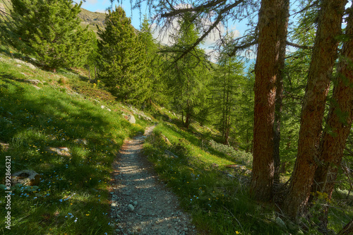 forest, mountain, pathway, tree, green, fresh, aromatic, spruce, grassy, flower, meadow, clearing, alpen, switzerland, pebble, pebble, way, daytime, find, adventure, walk, hike, trekking, outside, outdoors